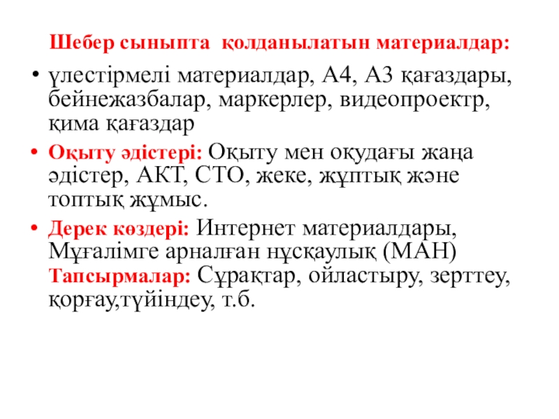 Слайд 7Шебер сыныпта қолданылатын материалдар: