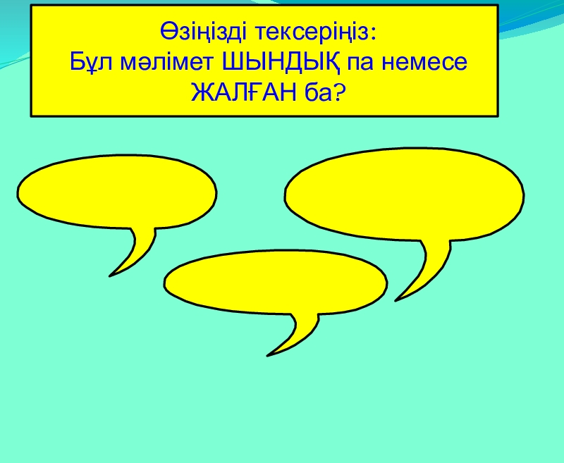 Бұл мәлімет ШЫНДЫҚ па немесе ЖАЛҒАН ба?