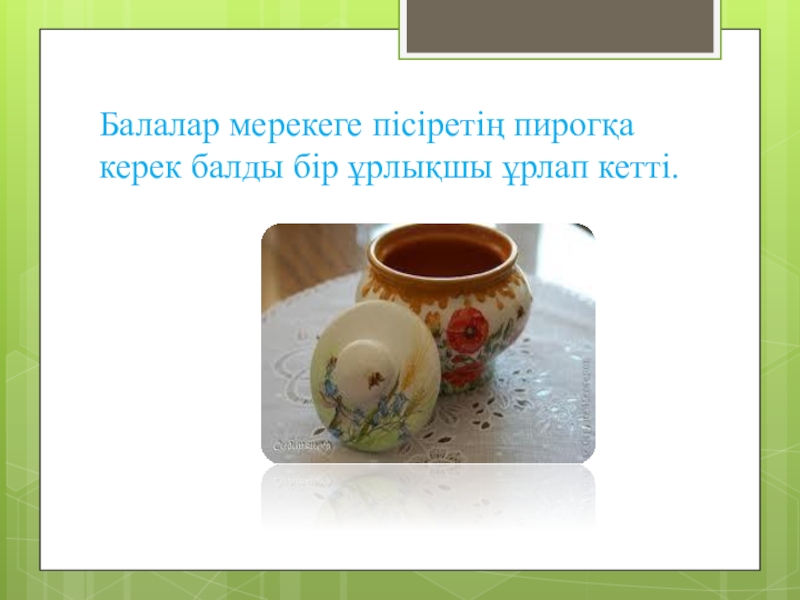 Слайд 2Балалар мерекеге пісіретің пирогқа керек балды бір ұрлықшы ұрлап кетті.