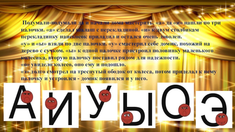 Ходили звуки по свету и голосисто пели. За это их стали называть гласными и красные рубашки подарили.