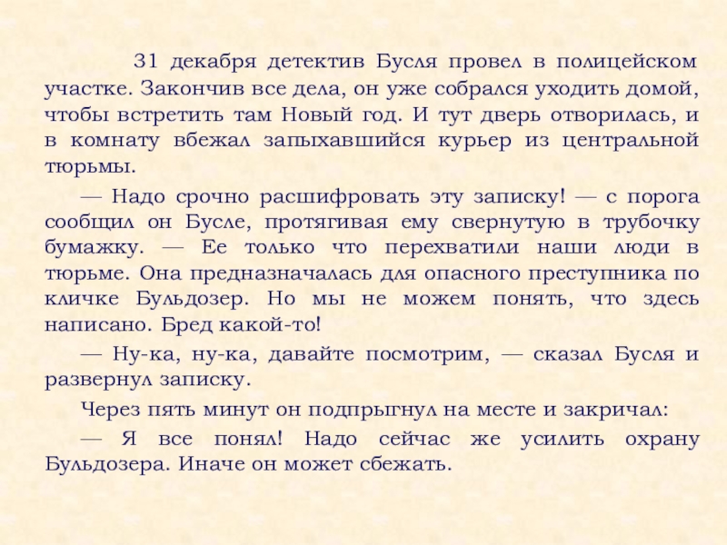 Слайд 9 31 декабря детектив Бусля провел в полицейском участке.