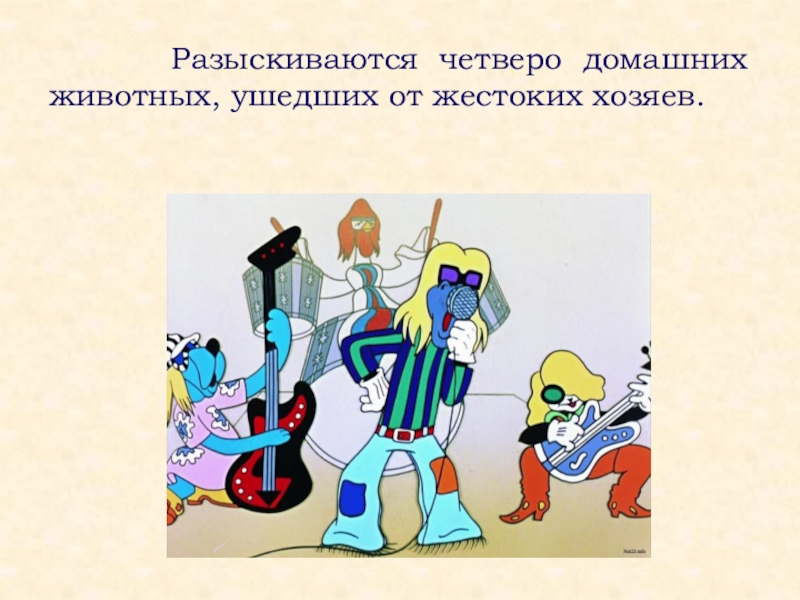 Слайд 6 Разыскиваются четверо домашних животных, ушедших от жестоких хозяев.