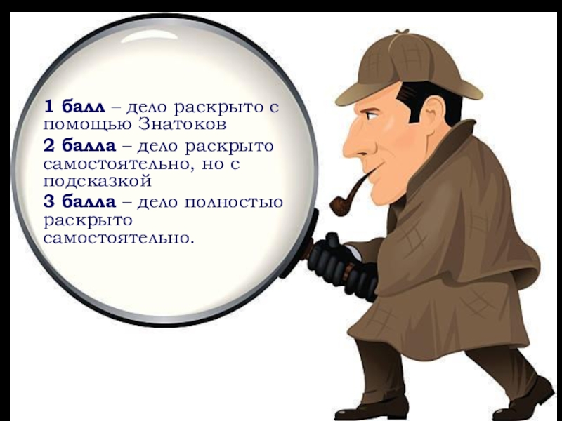 Слайд 21 балл – дело раскрыто с помощью Знатоков