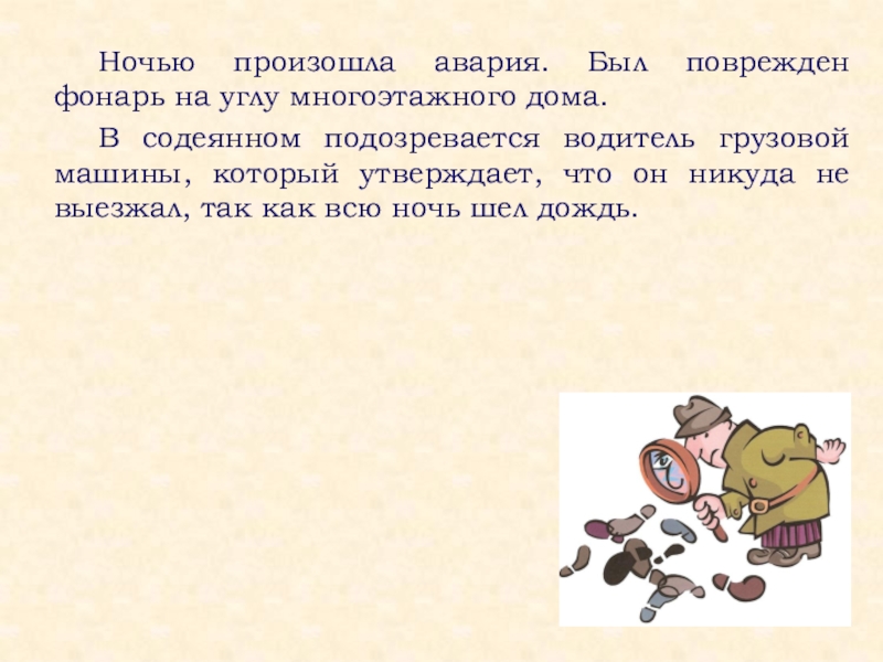 Слайд 16Найдите улику, которая доказывает, что водитель грузовика не виноват.