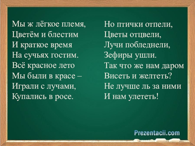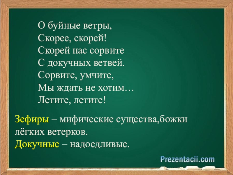 тощая зелень, лёгкое племя, краткое время, буйные ветры, докучные ветви.