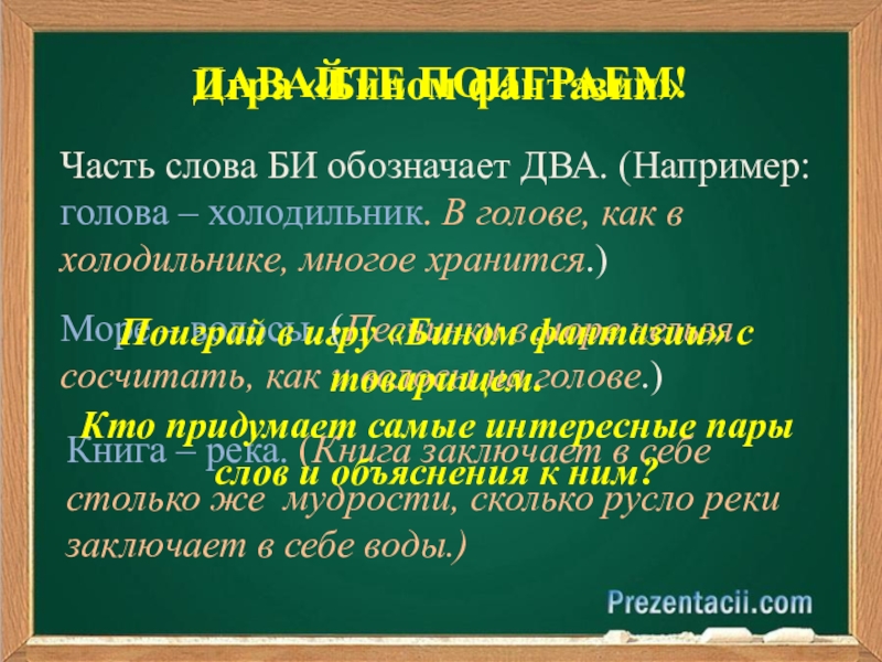 Кто придумает самые интересные пары слов и объяснения к ним?