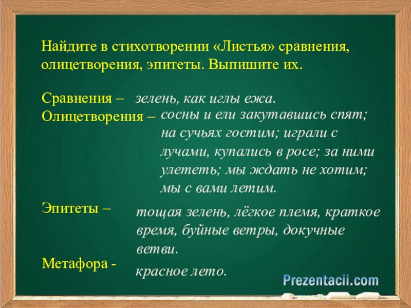 сосны и ели закутавшись спят; на сучьях гостим; играли с лучами, купались в росе; за ними улететь; мы ждать не хотим; мы с вами летим.