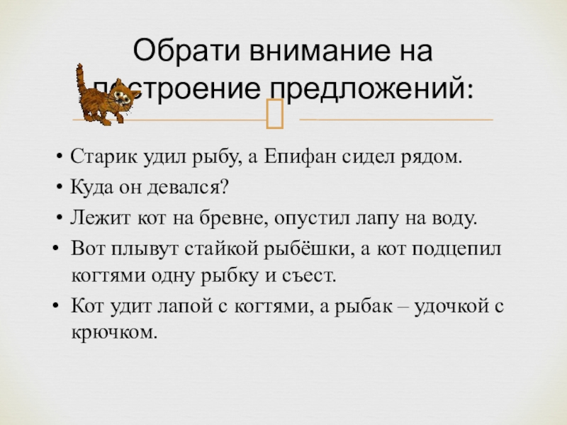 Обрати внимание на построение предложений: