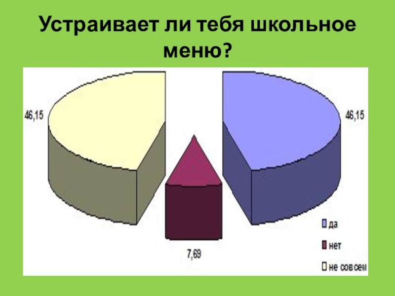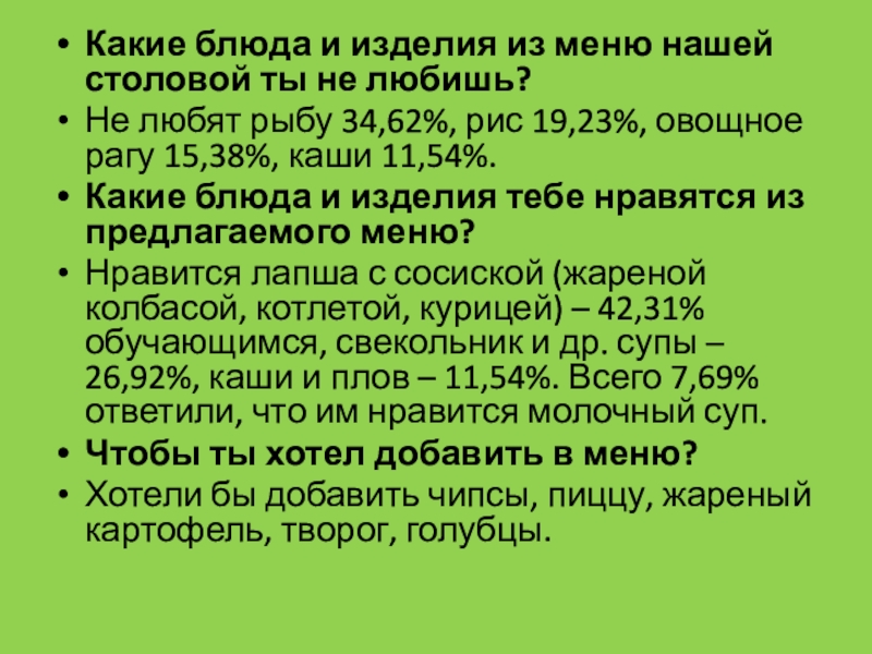 Слайд 22Какие блюда и изделия из меню нашей столовой ты не любишь?