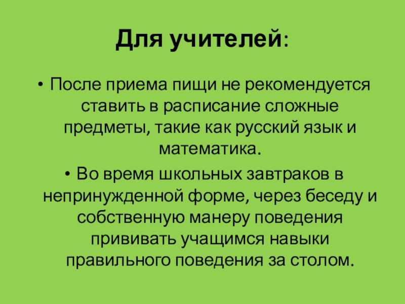 После приема пищи не рекомендуется ставить в расписание сложные предметы,