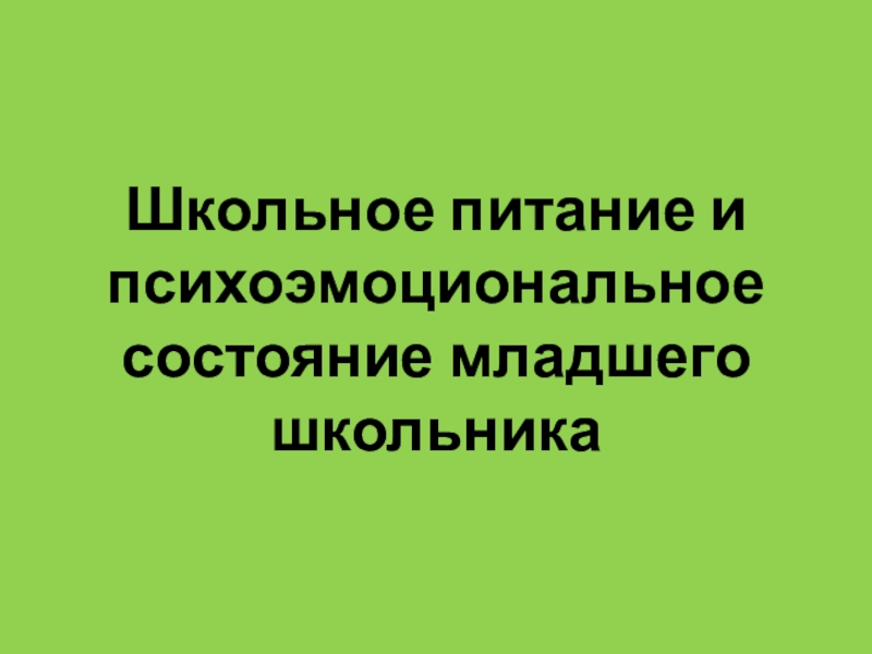 Школьное питание и психоэмоциональное состояние младшего школьника