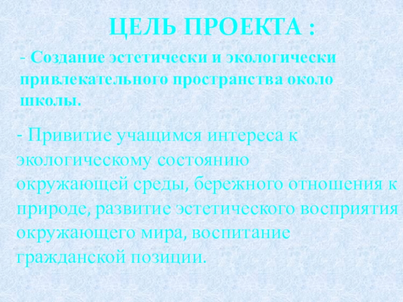 Привлечь учащихся, учителей, родителей, Администрацию посёлка к созданию благоприятных условий школьного двора!!!