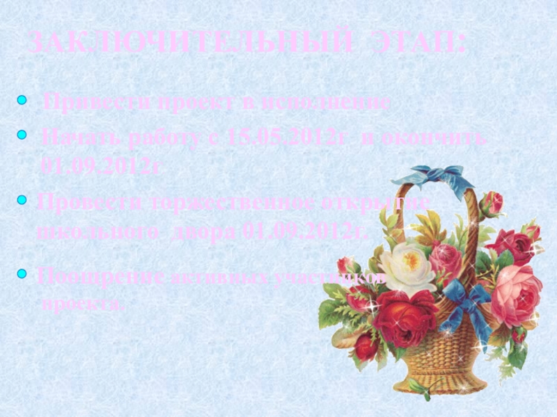 Провести торжественное открытие школьного двора 01.09.2012г.