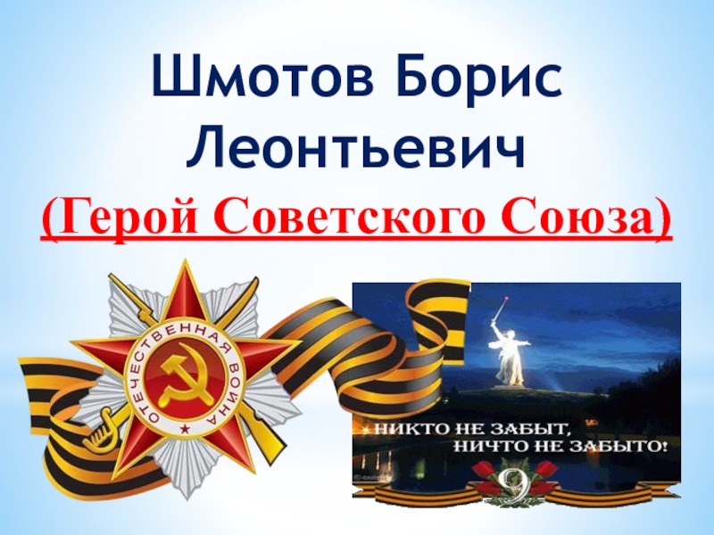 Советской Армии и направляет в воздушно-десантное училище. В декабре 1941 года парашютист Шмотов защищает на Западном фронте Москву, позднее он участвует в наступлении наших войск на Калининском фронте. Где бы он ни воевал, младший лейтенант Борис Шмотов, он везде показывает пример личной храбрости, находчивости и командирской распорядительности. За смелость и умелое руководство подразделением в бою Шмотову присваиваются очередные звания - лейтенант и старший лейтенант.