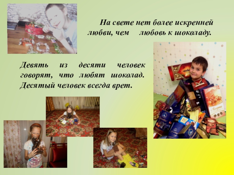 Девять из десяти человек говорят, что любят шоколад. Десятый человек всегда врет.