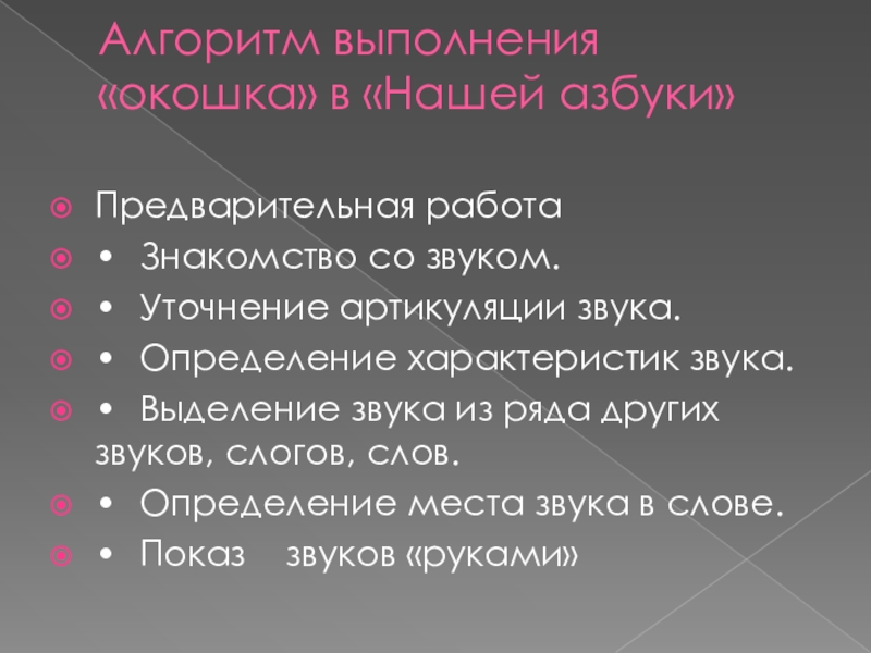 Слайд 10Алгоритм выполнения «окошка» в «Нашей азбуки»