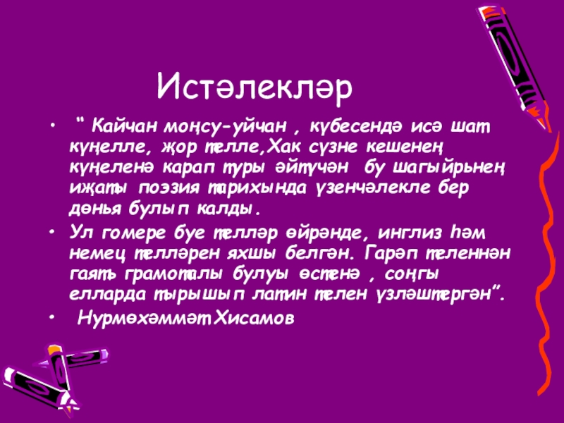Слайд 13Истәлекләр