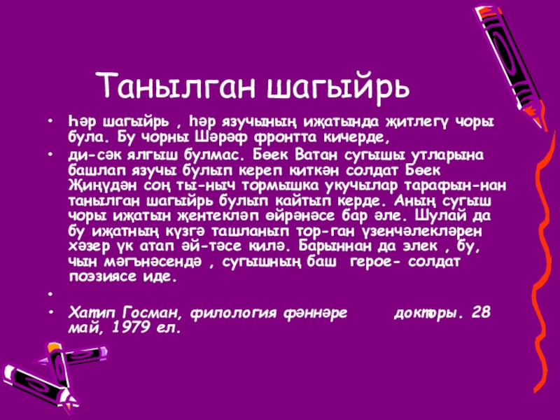 Слайд 4Танылган шагыйрь
