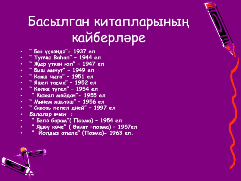Слайд 11Басылган китапларының кайберләре