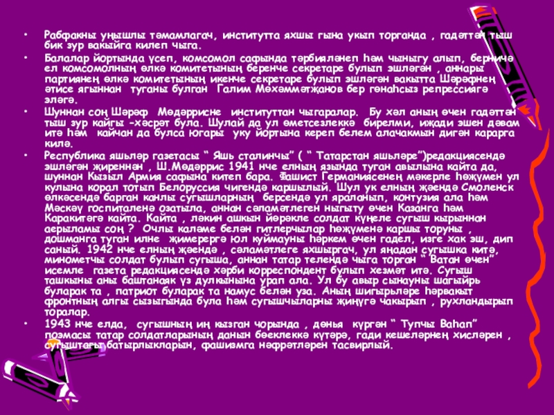 Слайд 8Рабфакны уңышлы тәмамлагач, институтта яхшы гына укып торганда , гадәттән тыш