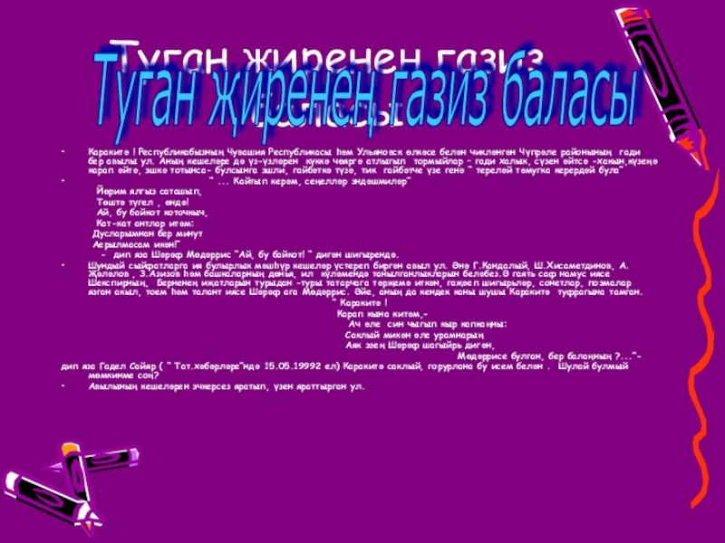 Слайд 5Туган җиренең газиз баласы