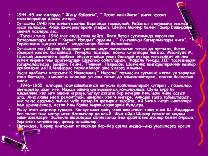 Слайд 91944-45 нче елларда “ Җиңү байрагы”, “ Фронт хакыйкате” дигән фронт