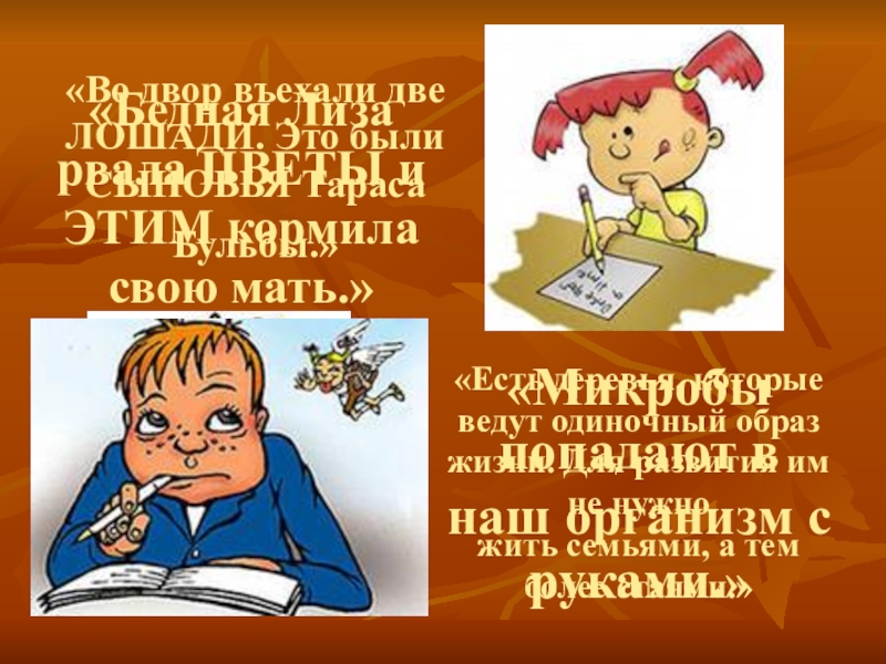 «Во двор въехали две ЛОШАДИ. Это были СЫНОВЬЯ Тараса Бульбы.»