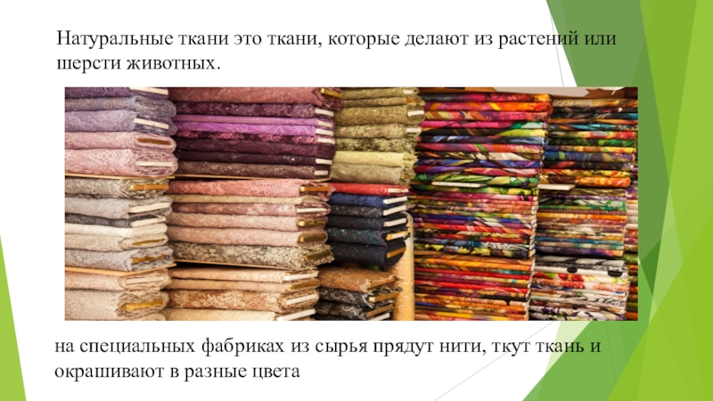 на специальных фабриках из сырья прядут нити, ткут ткань и окрашивают в разные цвета
