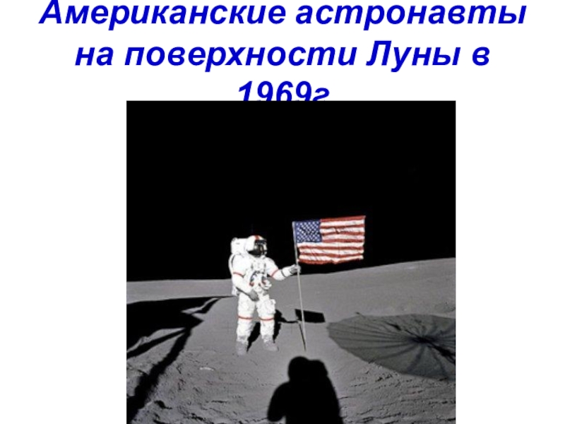 Слайд 6Американские астронавты на поверхности Луны в 1969г