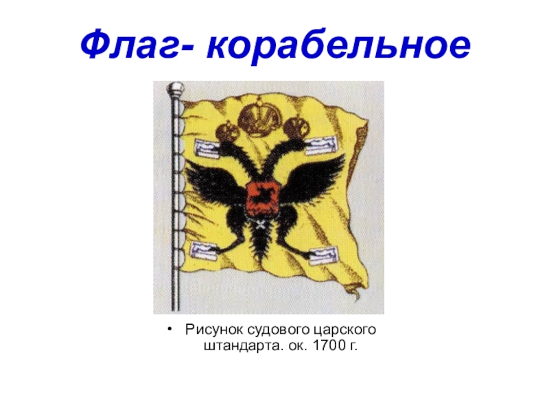 Флаг- корабельное знамяРисунок судового царского штандарта. ок. 1700 г.