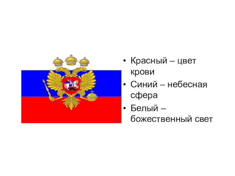 Красный – цвет кровиСиний – небесная сфераБелый – божественный свет