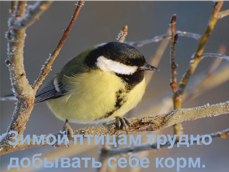 Слайд 34Зимой птицам трудно добывать себе корм.