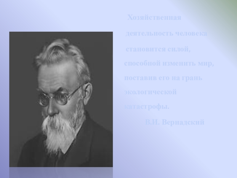 Хозяйственная деятельность человека становится силой, способной изменить мир, поставив его на грань экологической катастрофы.
