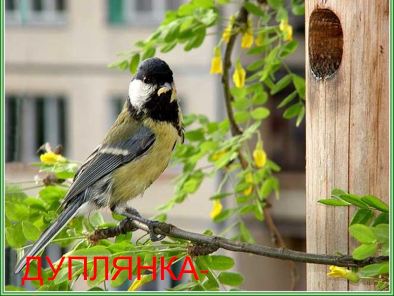 Слайд 49ДУПЛЯНКА-СИНИЧНИК