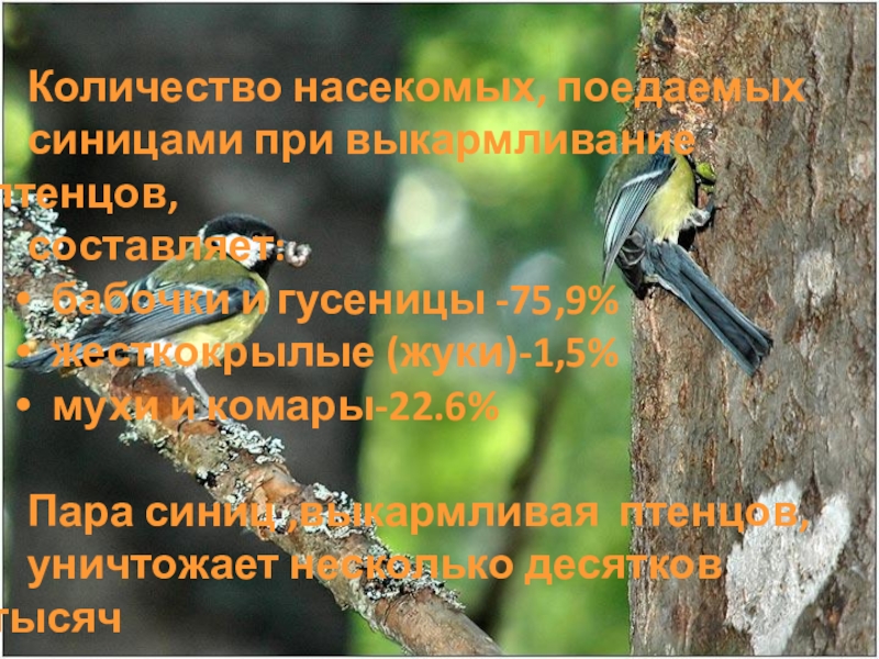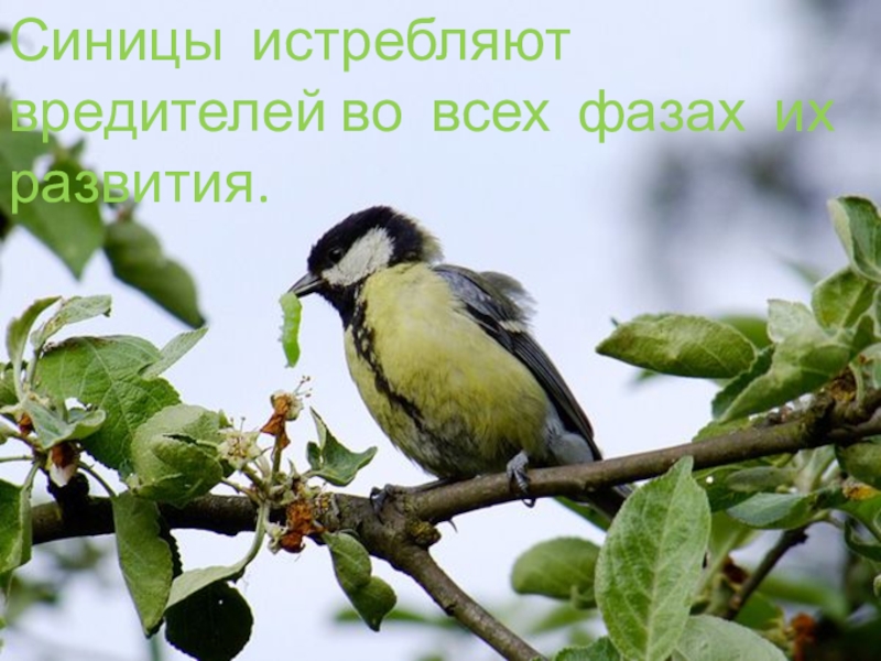 Слайд 59Синицы истребляют вредителей во всех фазах их развития.