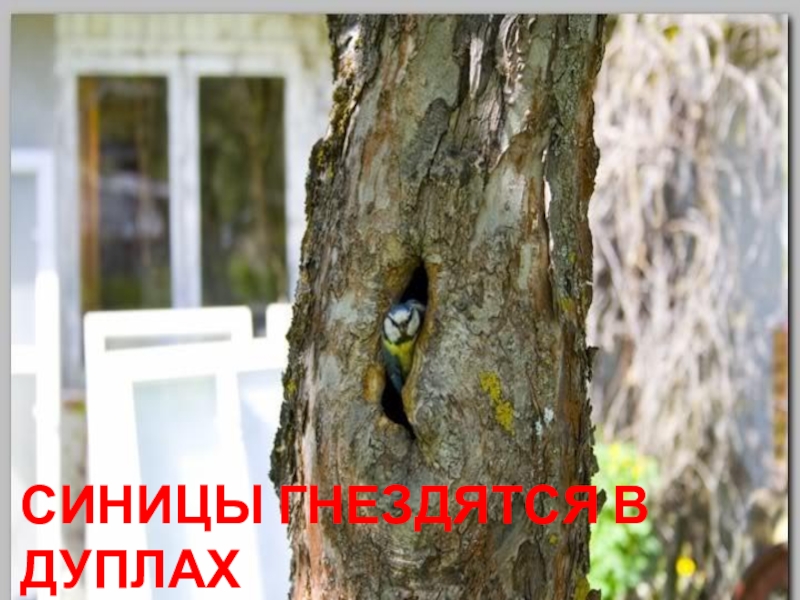 Слайд 18СИНИЦЫ ГНЕЗДЯТСЯ В ДУПЛАХ