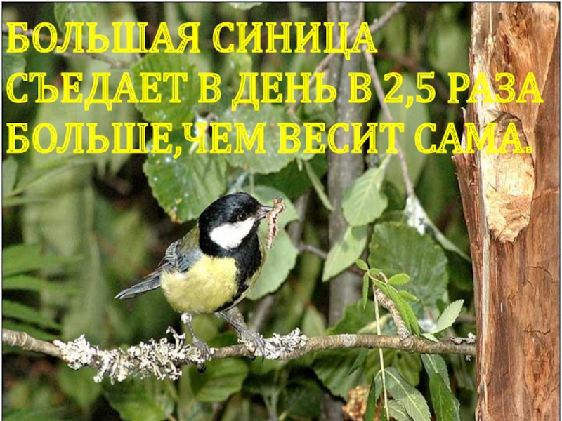 Слайд 29БОЛЬШАЯ СИНИЦА СЪЕДАЕТ В ДЕНЬ В 2,5 РАЗА БОЛЬШЕ,ЧЕМ ВЕСИТ САМА.