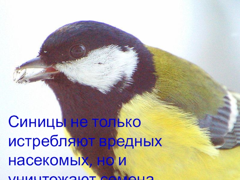 Слайд 57Синицы не только истребляют вредных насекомых, но и уничтожают семена сорняков.