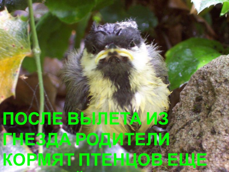 Слайд 27ПОСЛЕ ВЫЛЕТА ИЗ ГНЕЗДА РОДИТЕЛИ КОРМЯТ ПТЕНЦОВ ЕЩЕ 7-10 ДНЕЙ.
