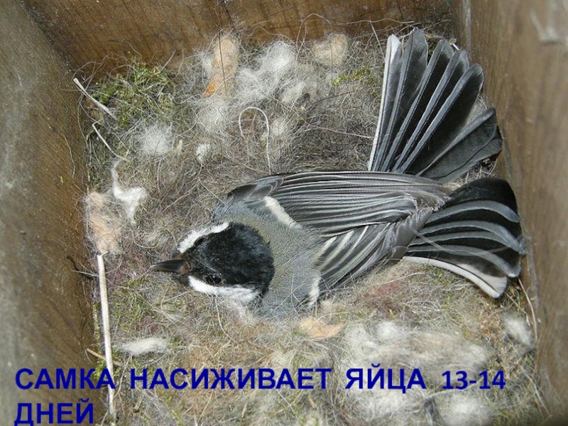 Слайд 24САМКА НАСИЖИВАЕТ ЯЙЦА 13-14 ДНЕЙ