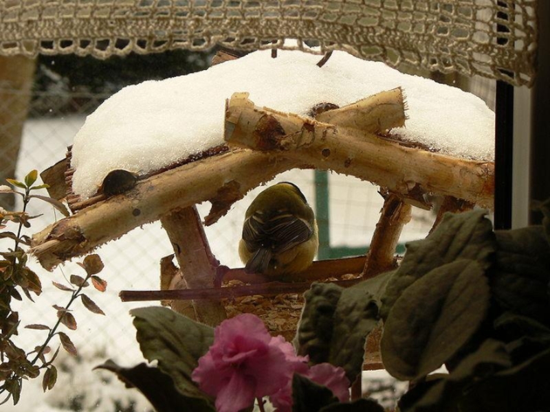 Синички очень осторожны, поэтому смотреть можно на них через окно.