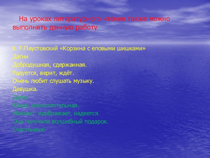 Слайд 11 На уроках литературного чтения также можно выполнять данную работу