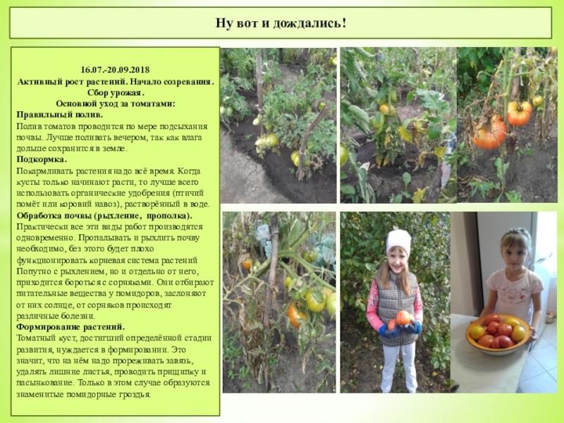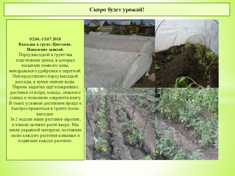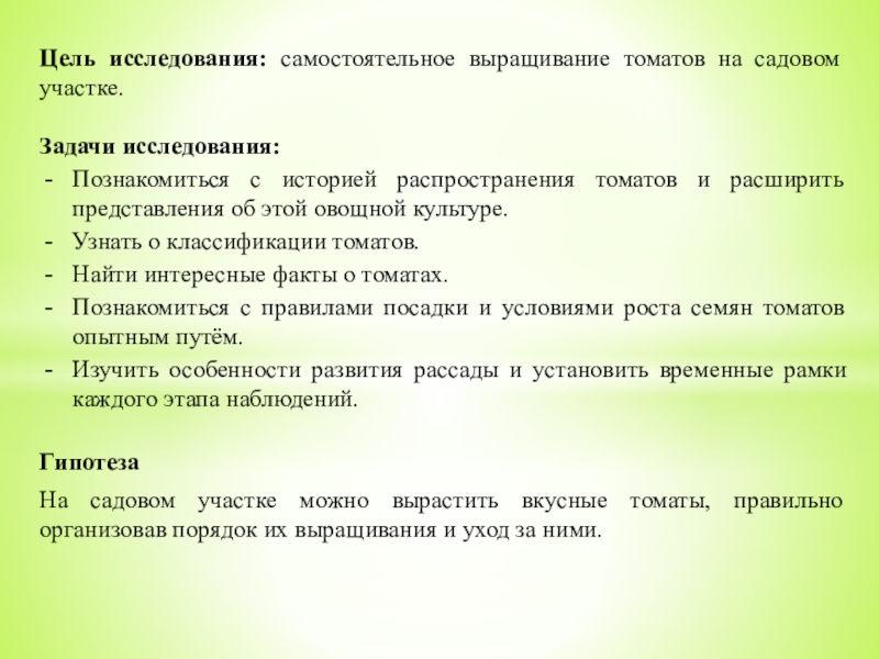 Слайд 3Цель исследования: самостоятельное выращивание томатов на садовом участке.