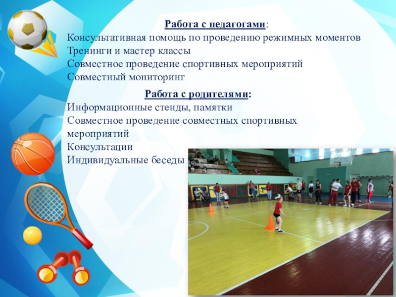 •скоростно-силовые качества: прыжок в длину с места, бросок набивного мяча двумя руками из-за головы, метание легкого мяча на дальность;