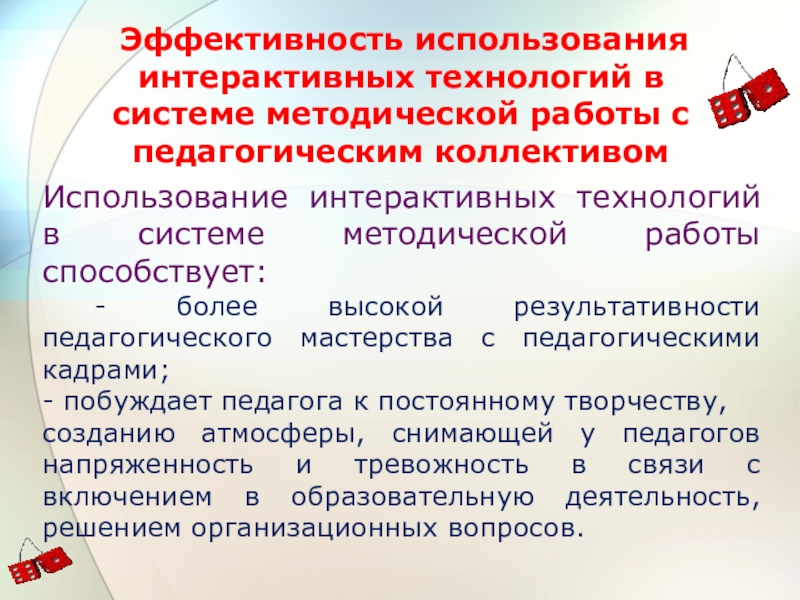 Использование интерактивных технологий в системе методической работы способствует: