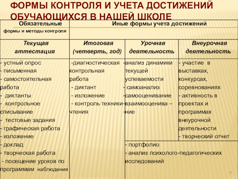 Формы контроля и учета достижений обучающихся