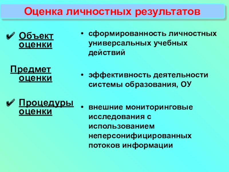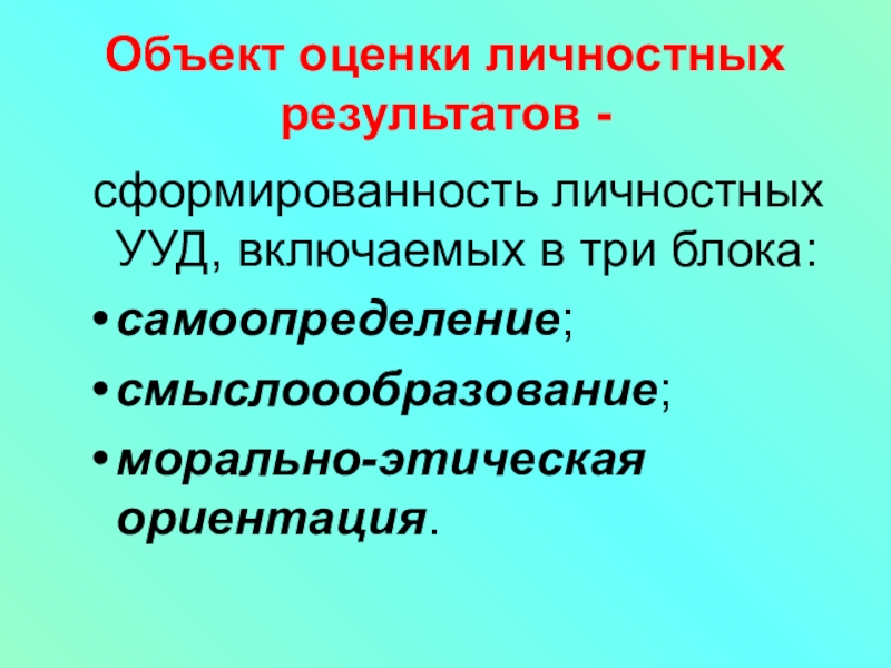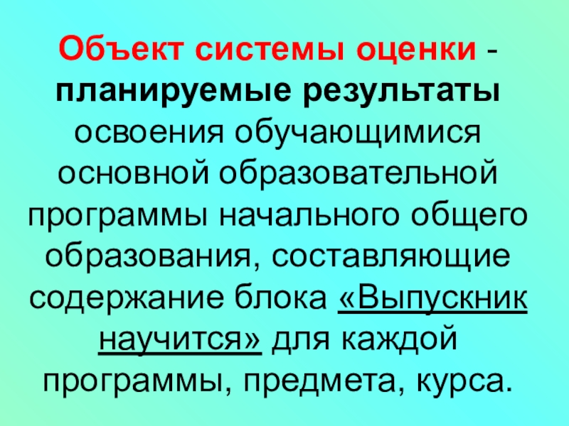 Слайд 5Объект системы оценки - планируемые результаты освоения обучающимися основной образовательной программы