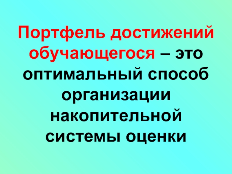 Слайд 24Портфель достижений обучающегося – это оптимальный способ организации накопительной системы оценки