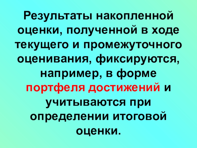 Слайд 23Результаты накопленной оценки, полученной в ходе текущего и промежуточного оценивания, фиксируются,