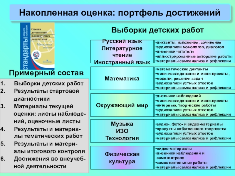 Накопленная оценка характеризует выполнение всей совокупности планируемых результатов, а также динамику образовательных достижений учащихся за период обучения.